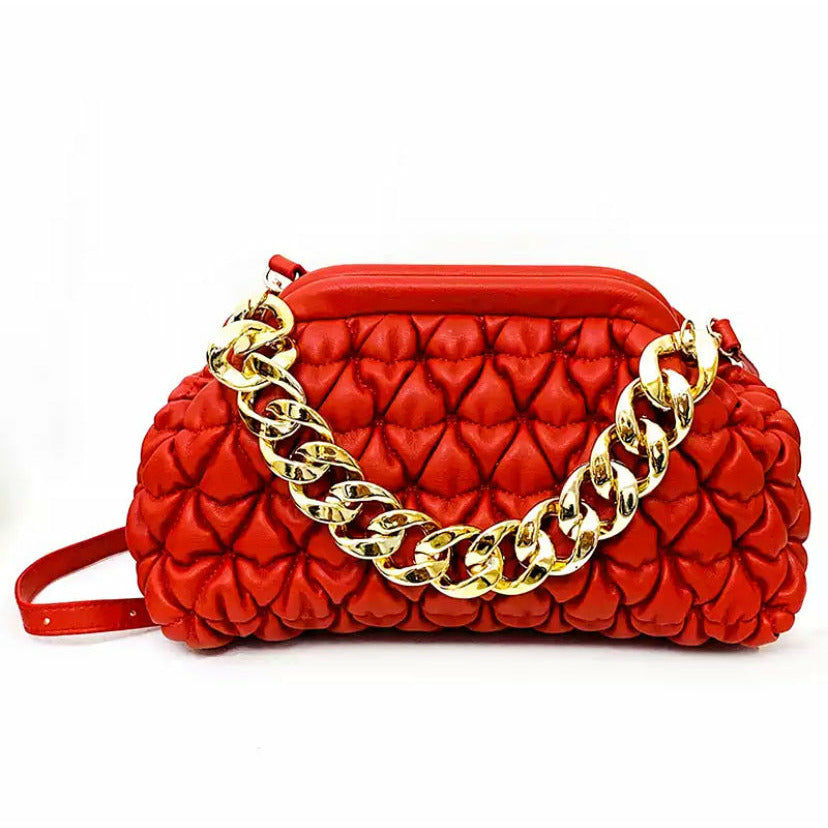 Red quilt purse with gold chain